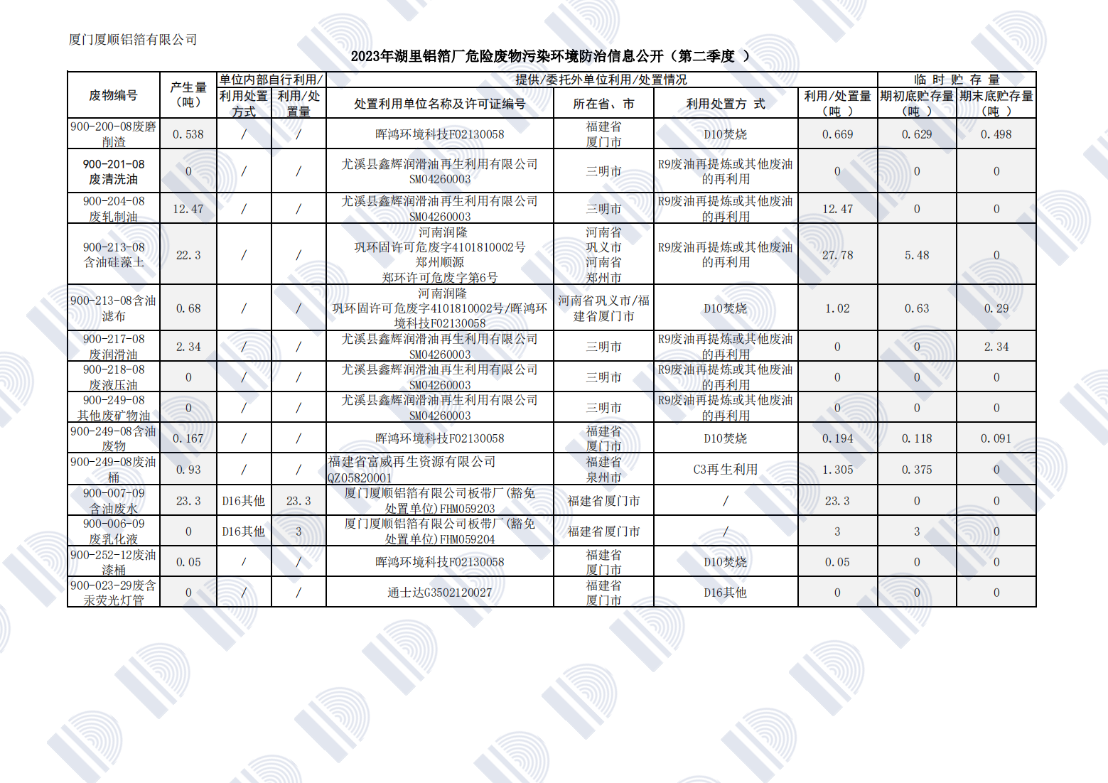 2023年海滄鋁箔廠危險廢物汙染環(huán)境防治信息公開(第二季度)