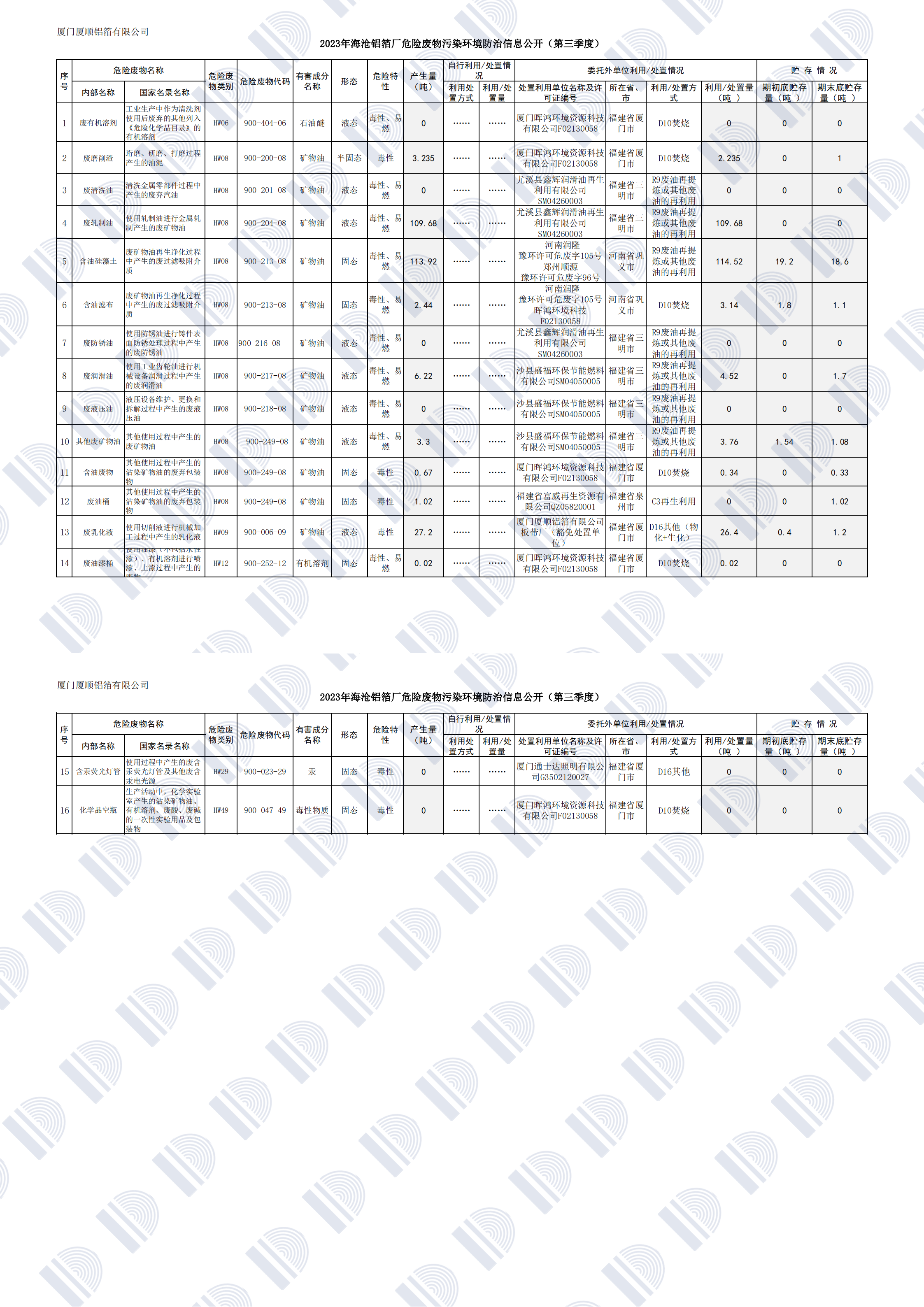 2023年海滄鋁箔廠危險廢物污染環(huán)境防治信息公開(第三季度)