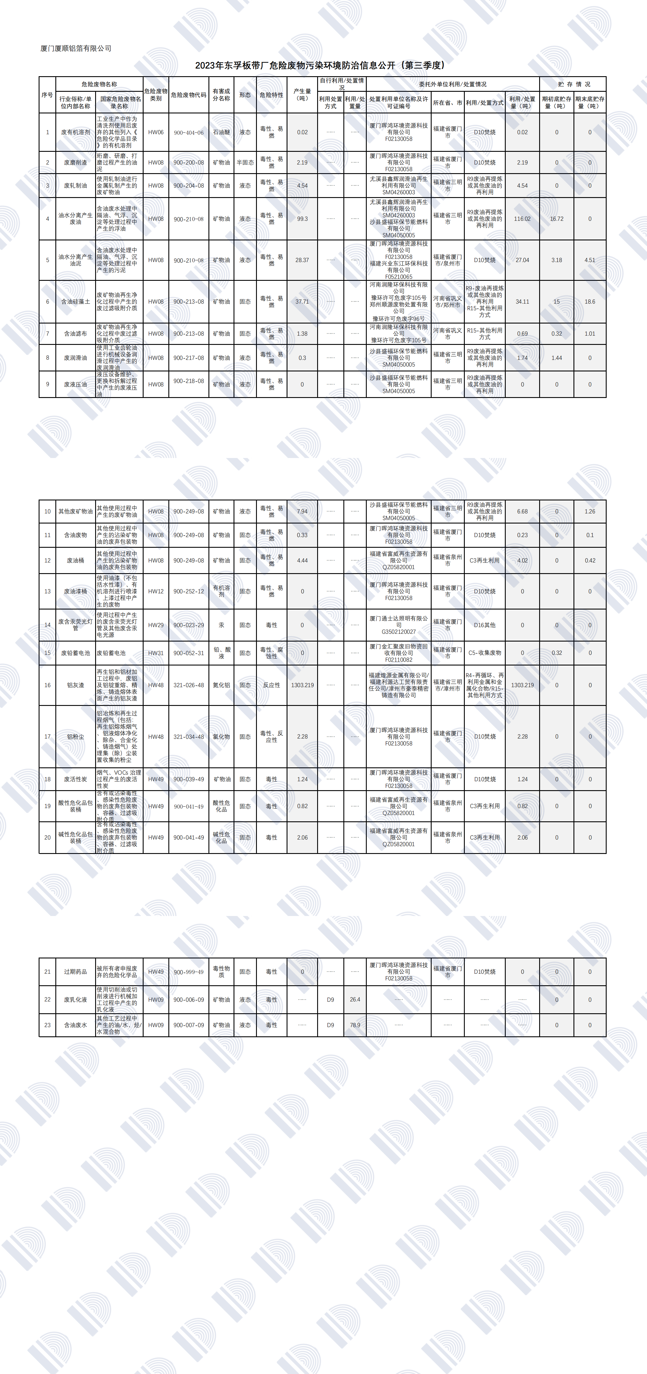 2023年東孚闆帶廠危險廢物汙染環(huán)境防治信息公開(第三季度)