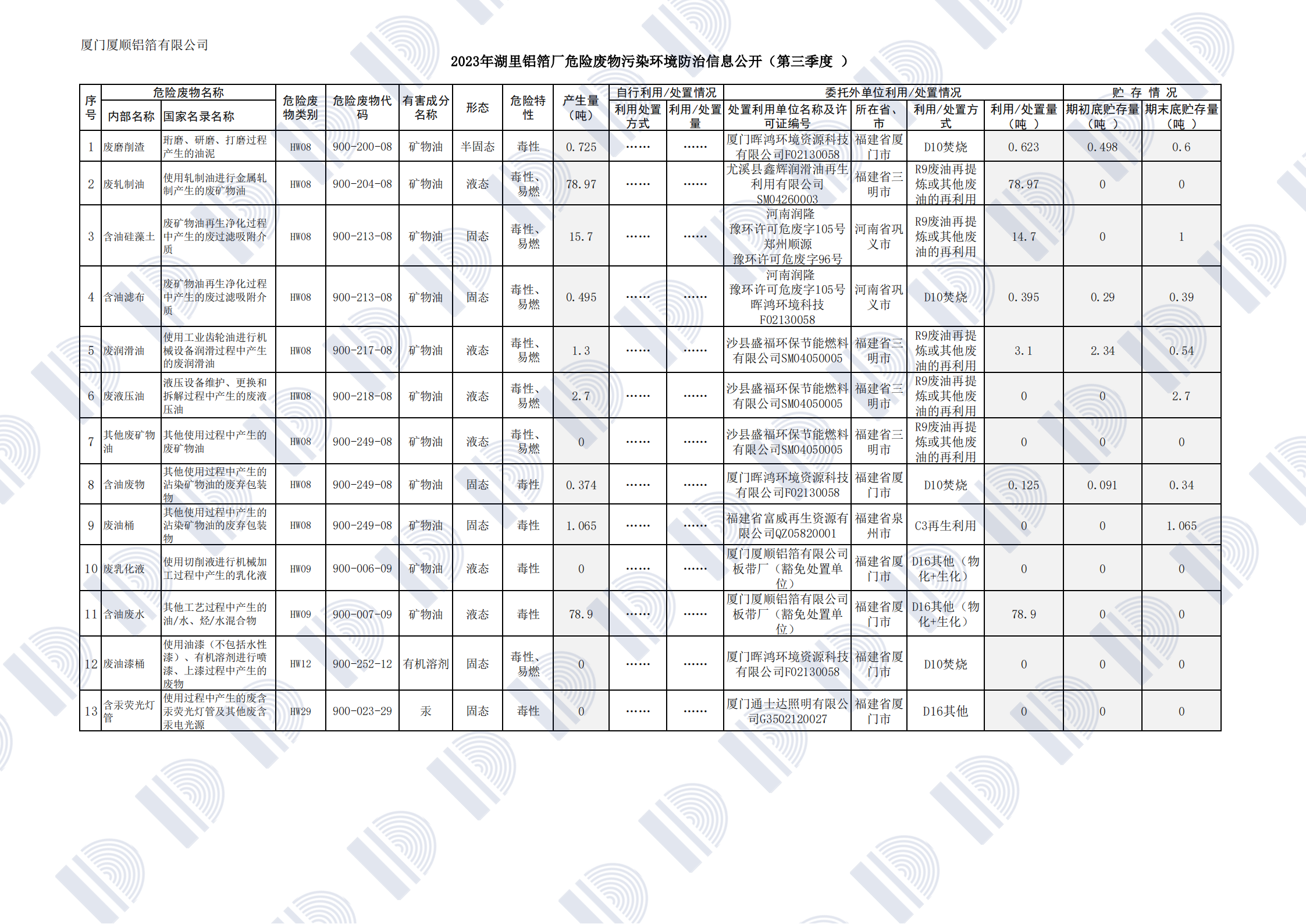 2023年湖里鋁箔廠危險廢物污染環(huán)境防治信息公開(第叁季度)